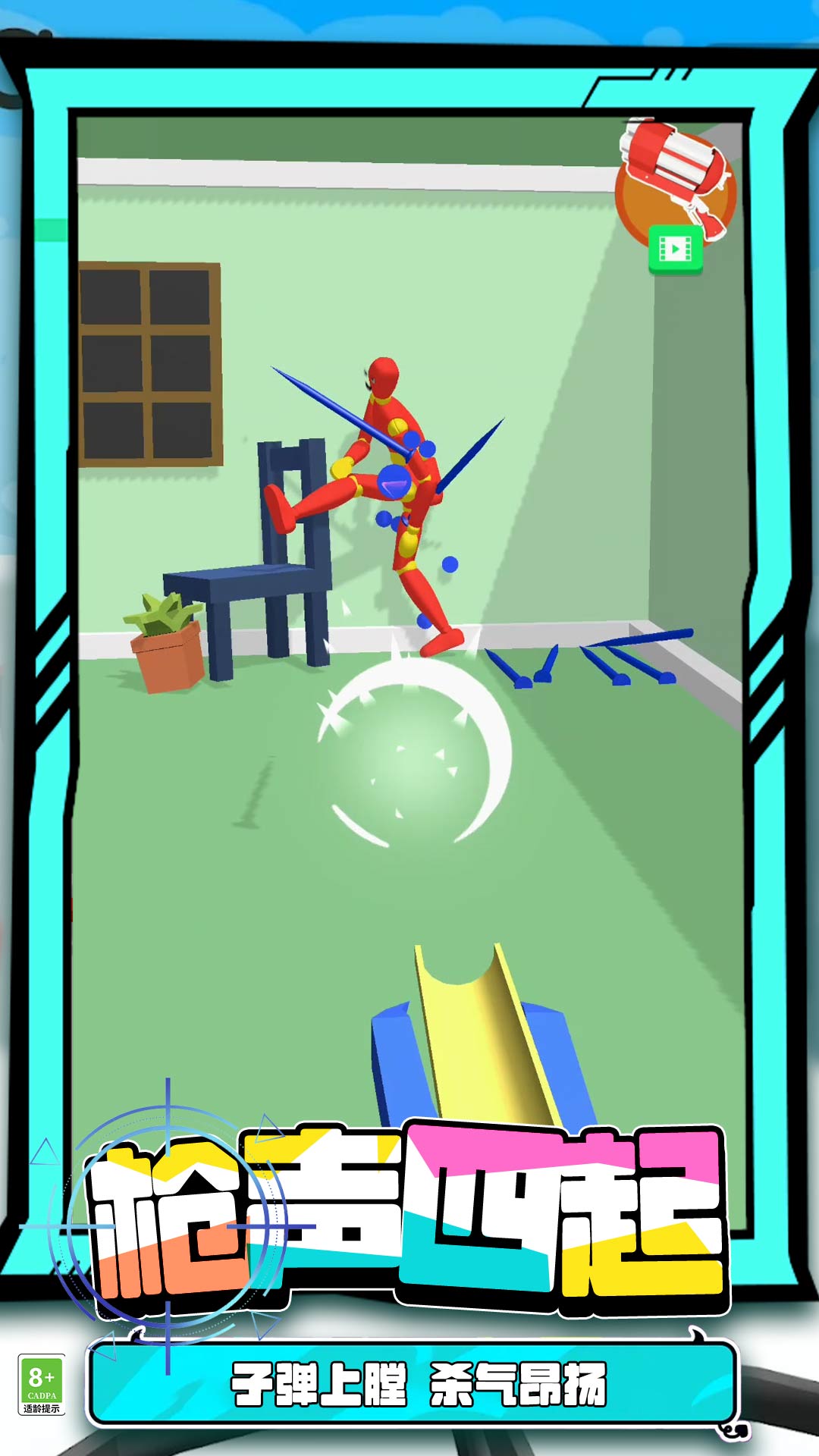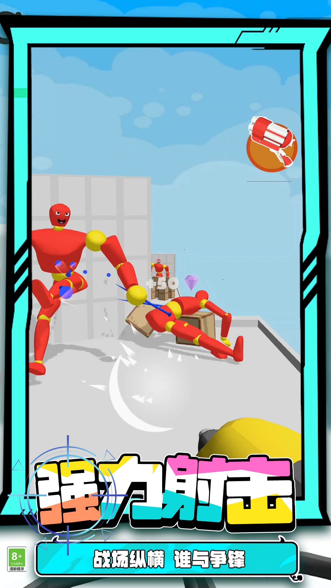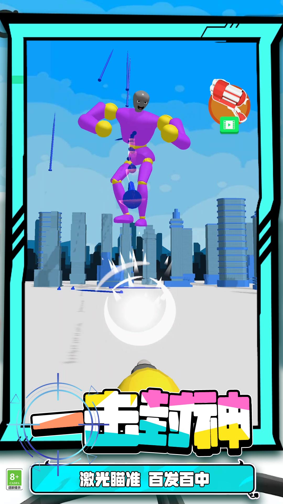 2、看着敌人倒地不起,就算是你胜利了,可以解锁下一关,继续射击。