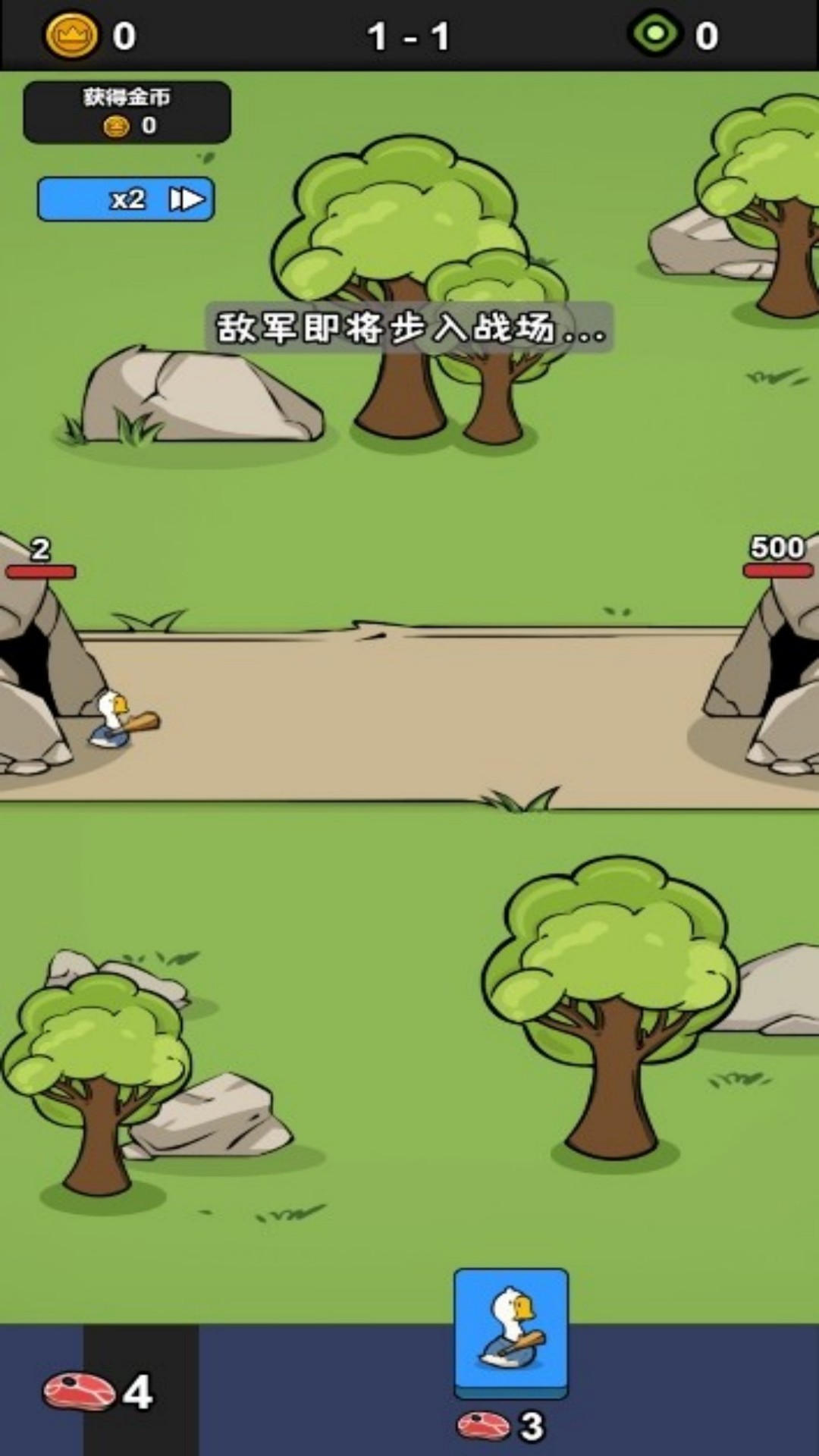 1、游戏玩法是策略与速度结合的休闲游戏,玩家化身大鹅指挥官,领导小队在未来世界执行任务。