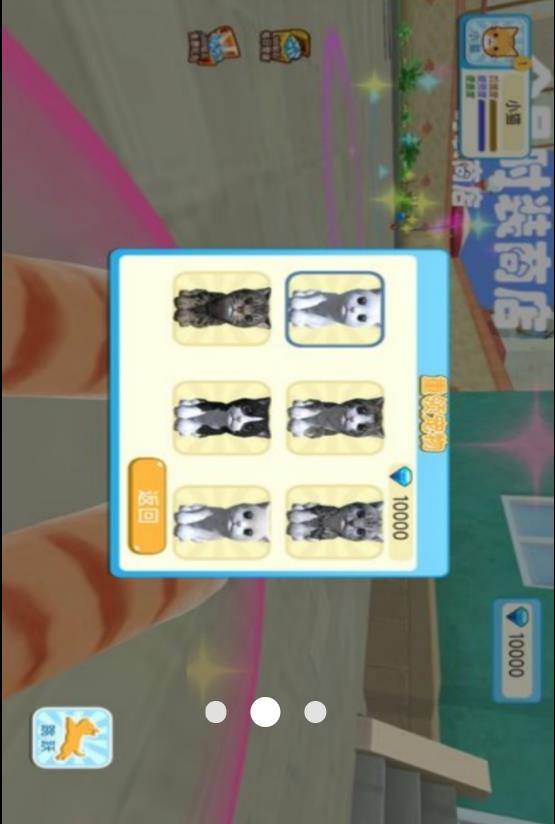 2、操控着你的猫咪四处探索,可以去商店里买喜欢的服装,进行自由的搭配,开心玩耍。