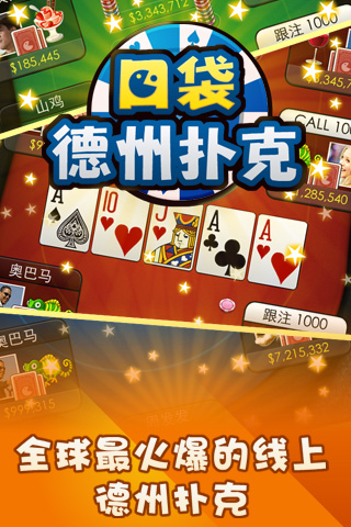 口袋德州手机版是一款快节奏的棋牌游戏平台,支持多个第三方平台登录即可畅玩。玩家可以享受到极致奢华的指尖游戏体验,也吸引了来自世界各地的高手参与,并带来了高清画质,让玩家尽享视觉震撼。